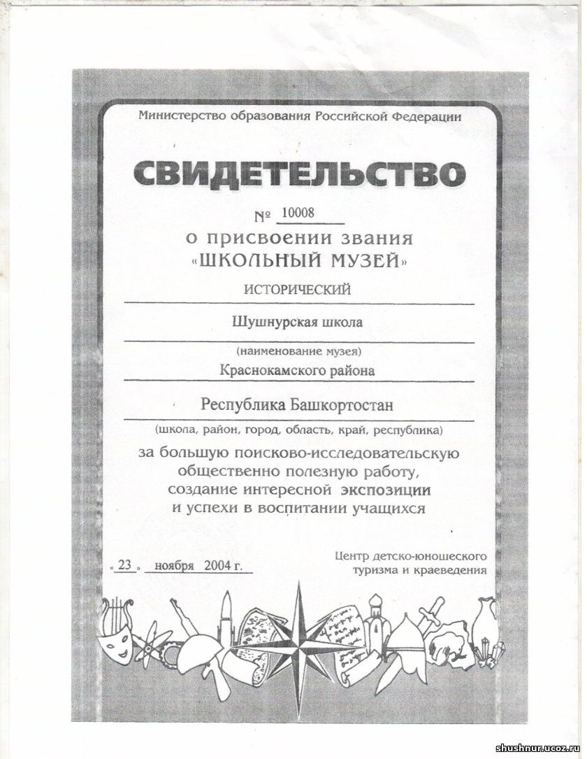 истории Шамшиева В.В. 23 ноября 2004 года музей получил статус «Школьный музей». Статус